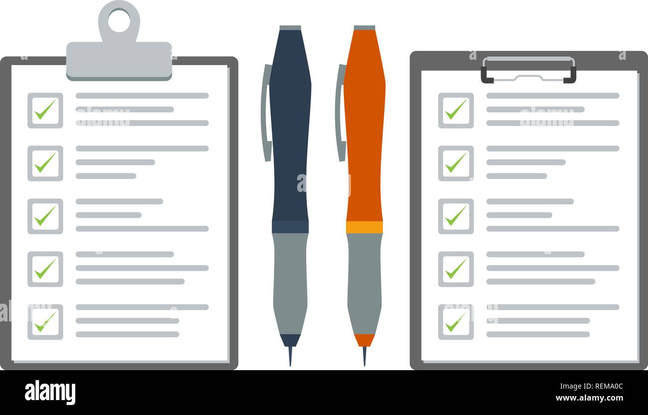 checklist alamy vector stock clipboard pen flat graphic color cartoon