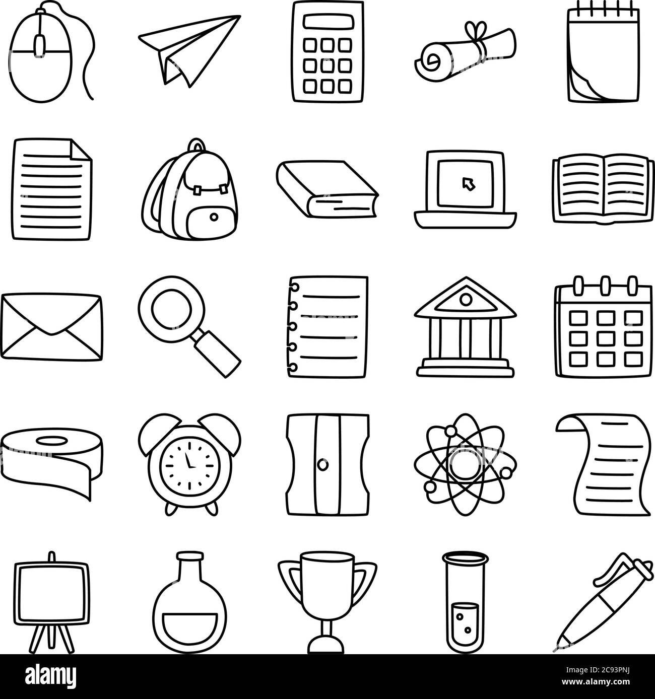 Download icon set of calendar and school supplies over white background, lineTeacher Clipart Black And White Free
