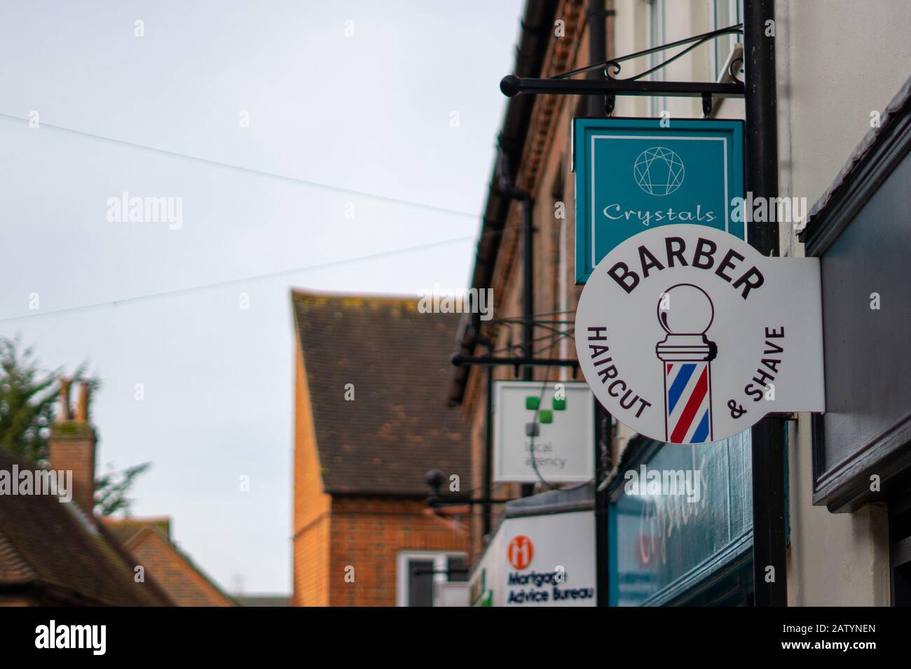 shop barber sign alamy stock building side