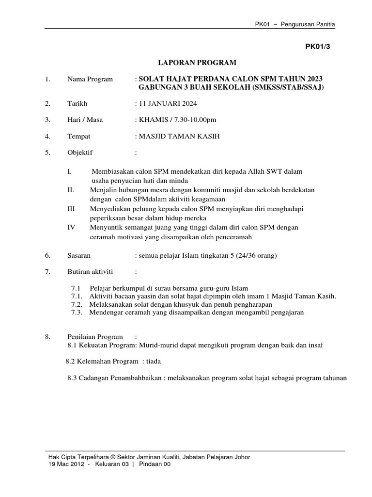 Download Pengurusan GrafikLaporan Program Solat Hajat Perdana 2024 | PDF