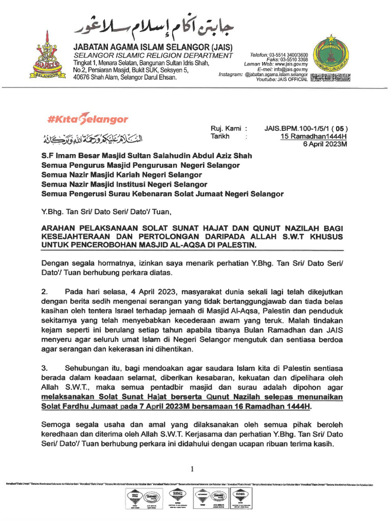 Download PANITIA HARI RAYA GEREJA Kop Surat | PDFSurat Pekeliling Arahan Pelaksanaan Solat Sunat Hajat Dan Qunut Nazilah