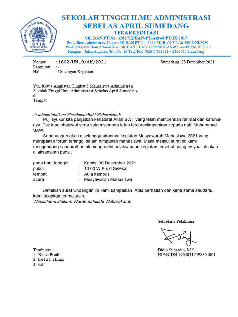 Contoh Surat Undangan Resmi | PDF