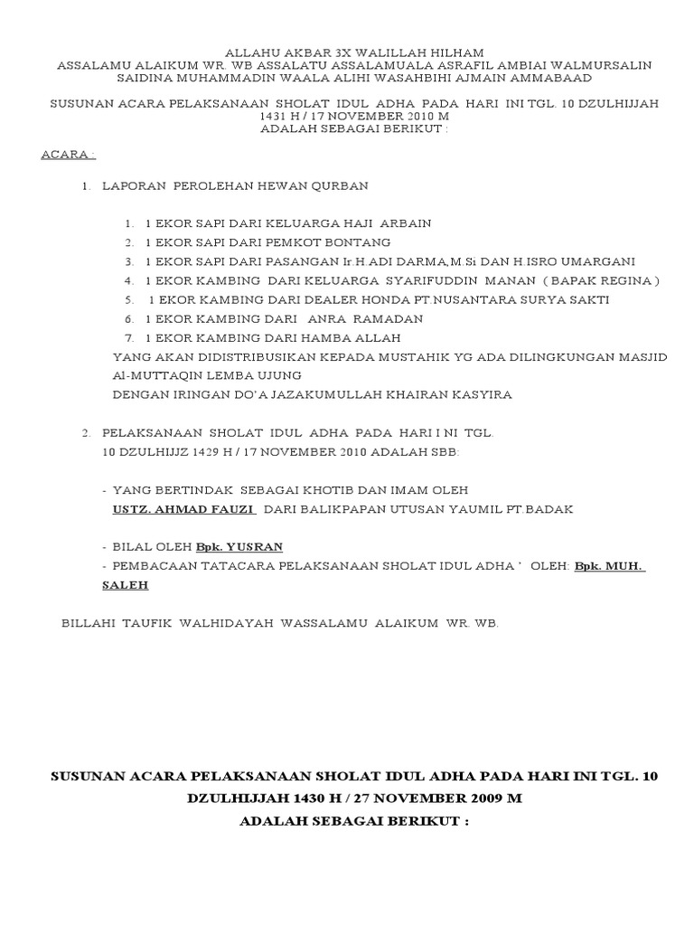 Download Contoh Contoh Susunan Acara Sholat Idul Adha - KAIZEN PALLIContoh Contoh Teks Pembawa Acara Sholat Idul Adha - Filtrujillo.com