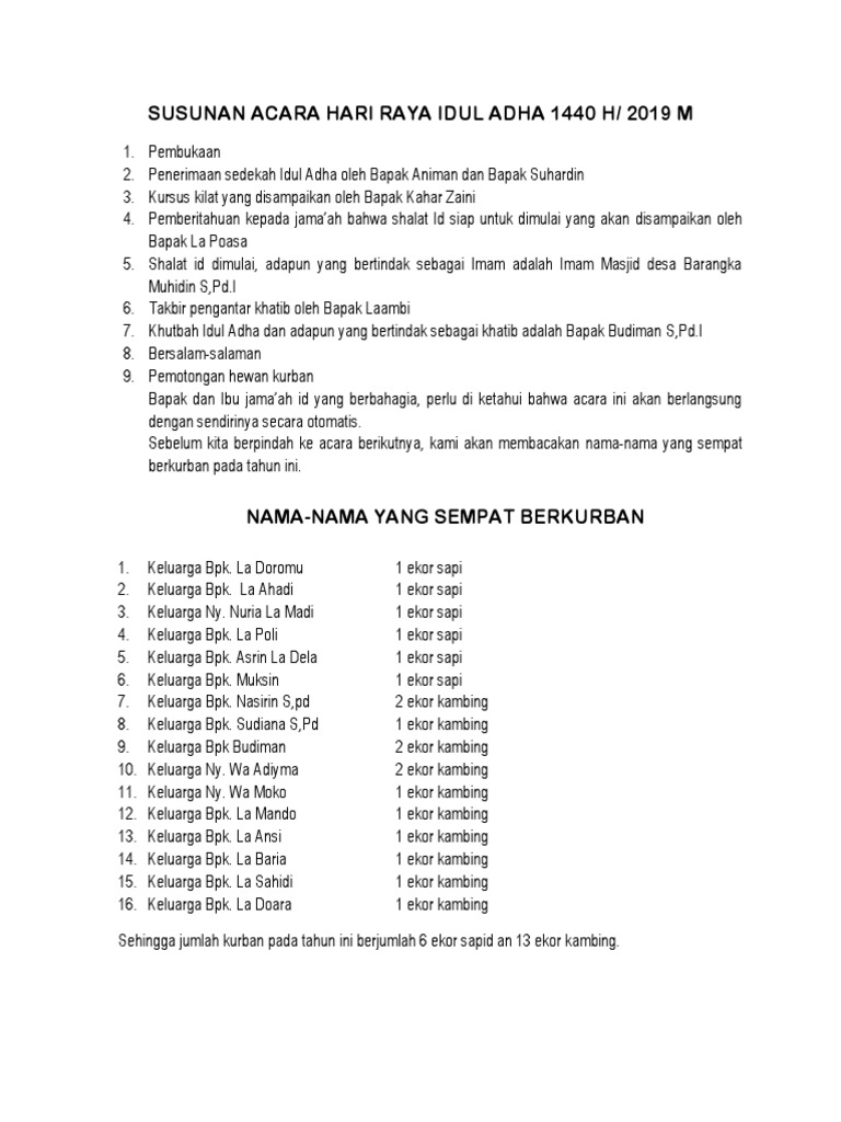Download Contoh Contoh Susunan Acara Sholat Idul Adha - KAIZEN PALLISusunan Acara Hari Raya Idul Adha 1440 H | PDF