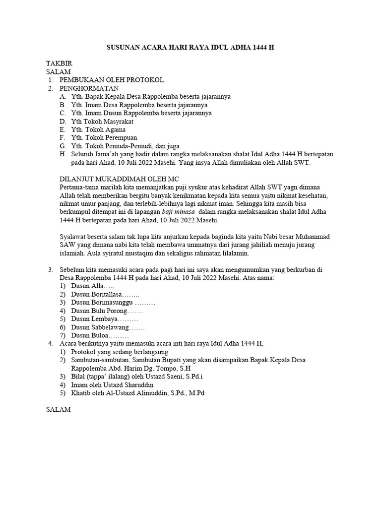 Download Contoh Contoh Susunan Acara Sholat Idul Fitri - KAIZEN PALLISusunan Acara Hari Raya Idul Adha 1444 H | PDF
