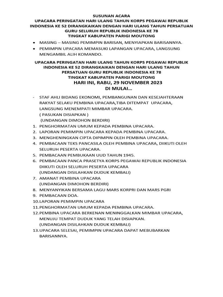 Download Susunan Acara Upacara Hari Ulang Tahun Korpri Dan Pgri | PDFContoh Laporan Kegiatan Hari Raya Idul Adha
