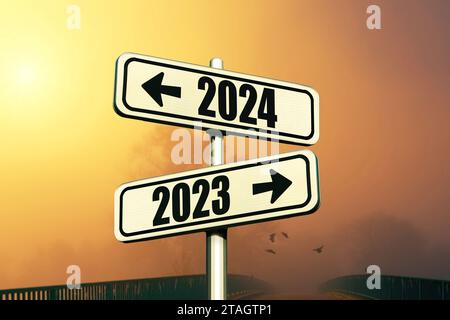 Download Road Signs Indicate The Path To The New Year 2024 And The Old Year 2023Premium Photo | 2024 New Year Development And Growth Concept Future