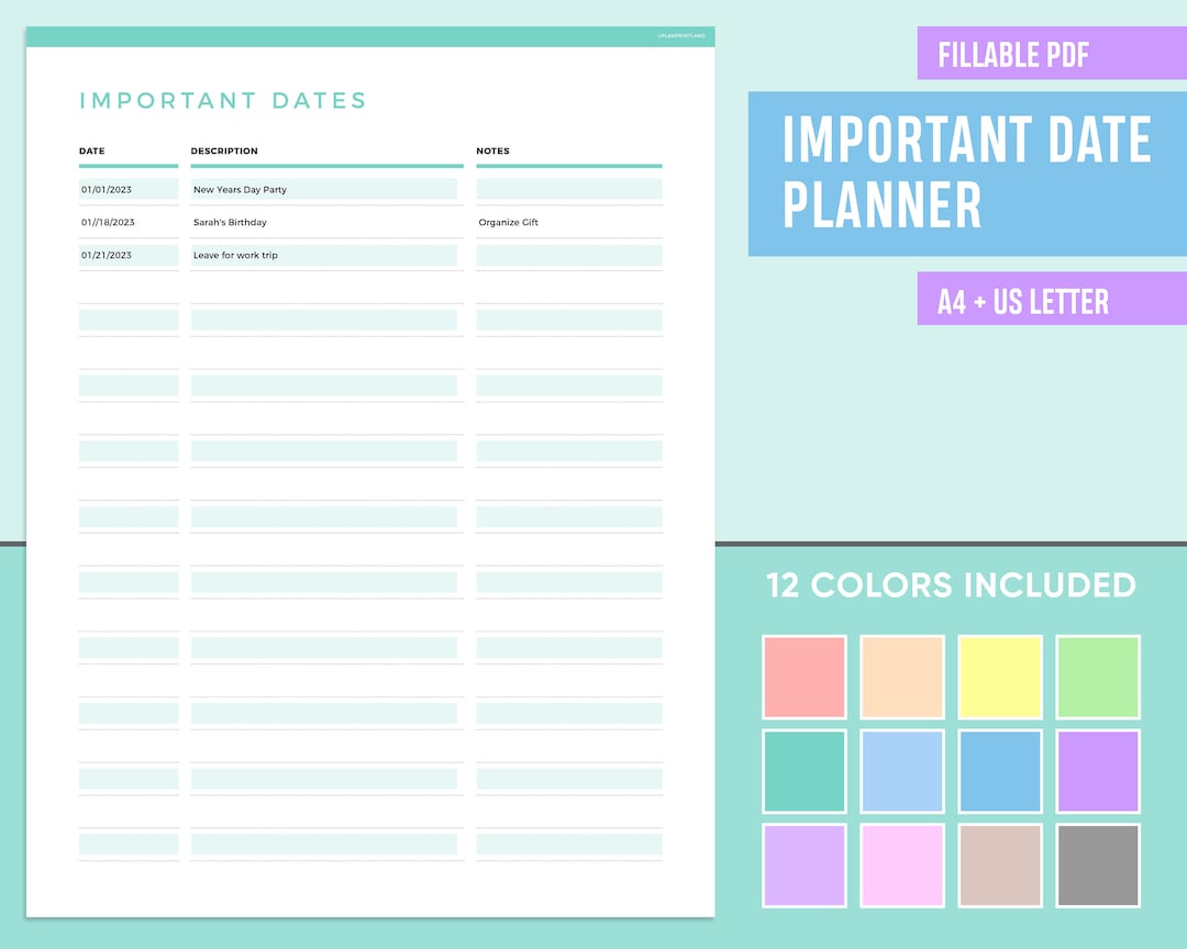 Download Important Dates Planner EDITABLE Important Dates Template PRINTABLEImportant Dates Planner EDITABLE Important Dates Template PRINTABLE