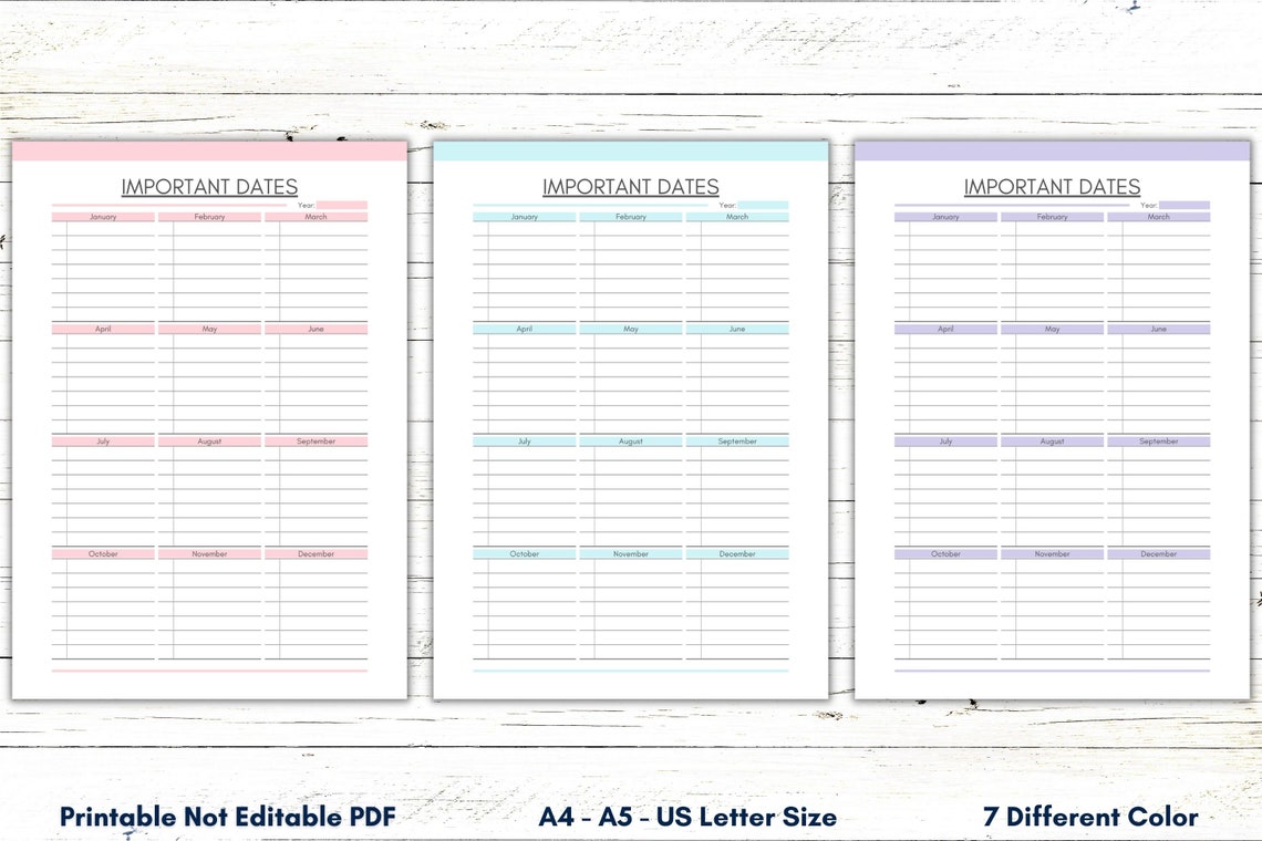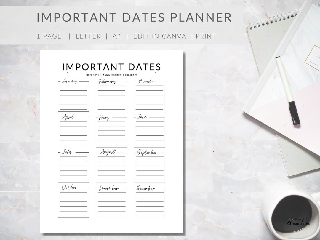 This picture beautifully captures the intricate details of Important Dates Planner EDITABLE Important Dates Template PRINTABLE. If you’re fascinated by exploring this subject further, you'll find an outstanding representation right here, which is sure to inspire and inform. The colors, composition, and subject matter all come together to create a truly remarkable piece of art that you won’t want to overlook.