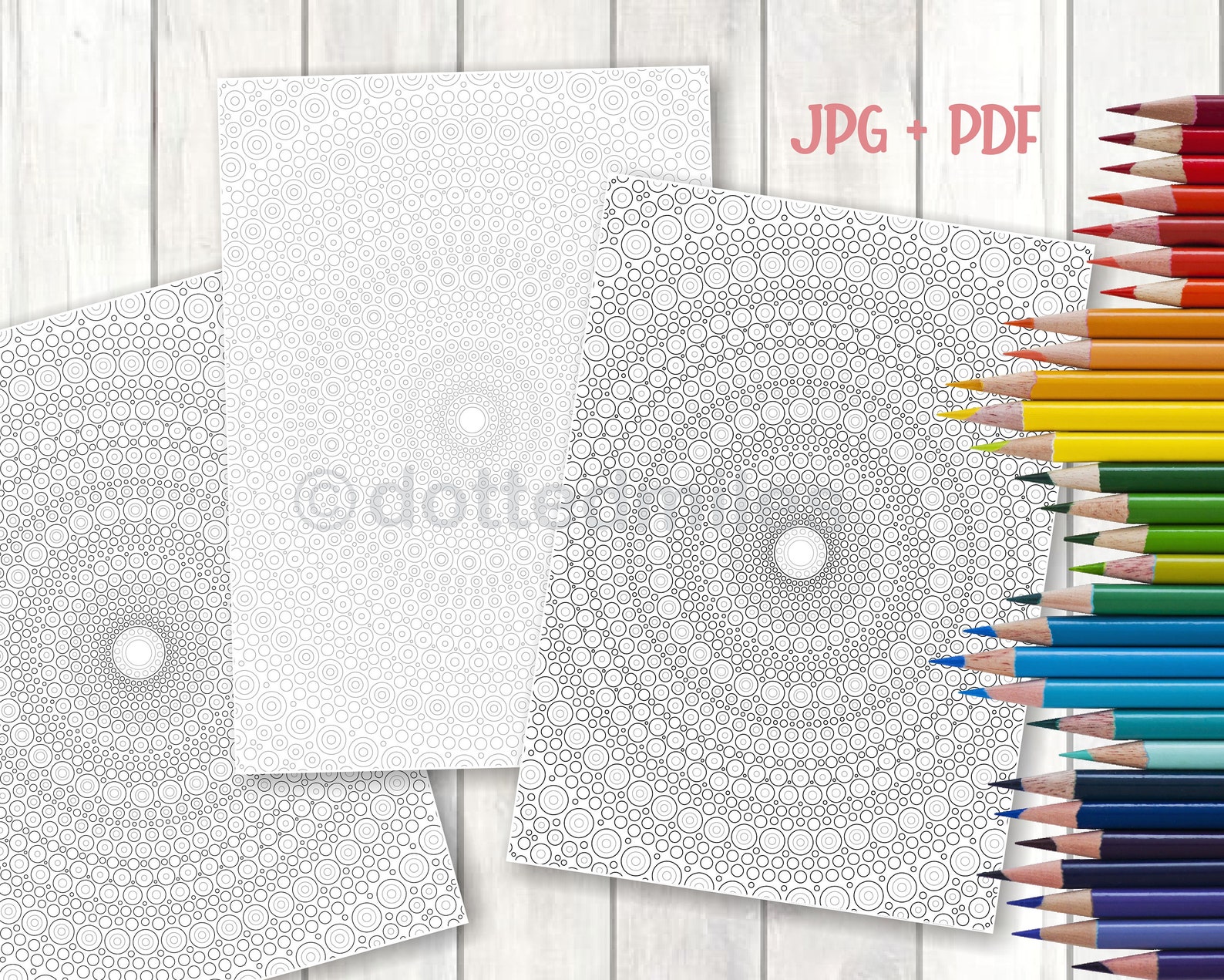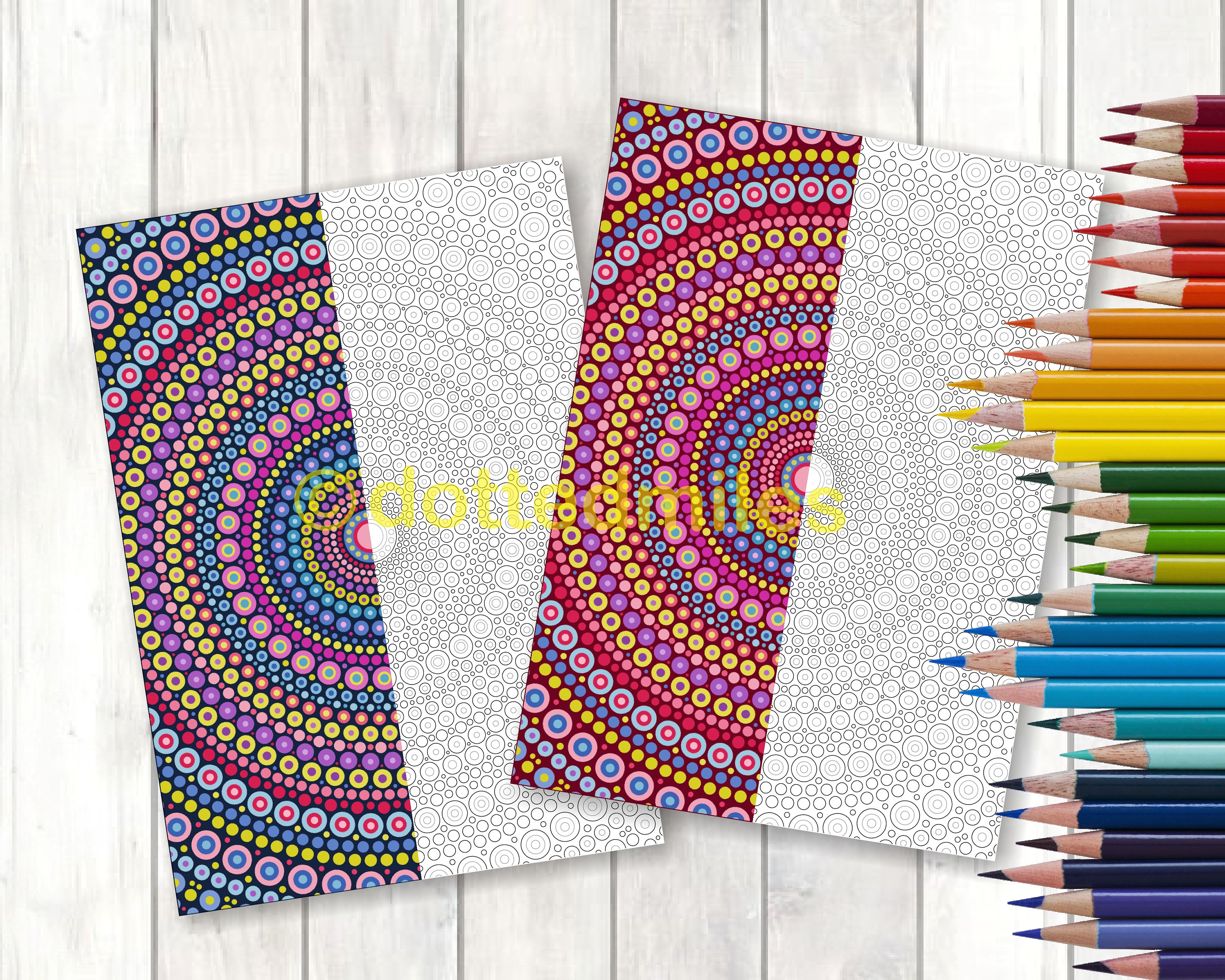 Download the free printable dot mandal coloring page with two colored pencilsPrintable Dot Mandala Colouring Page For Kids And Adults Coloring Page