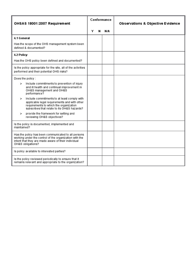 Download OHSAS 18001 Free Checklist | PDF | Occupational Safety And HealthOhs Monthly Report Template Audit Hazard Inspection Checklist Within
