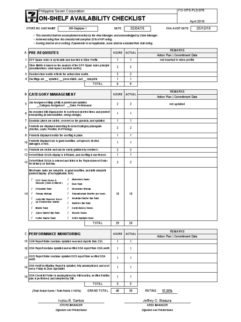 Download Area 6-May OSA Checklist | PDF | BusinessPrintable Monthly Checklist Template