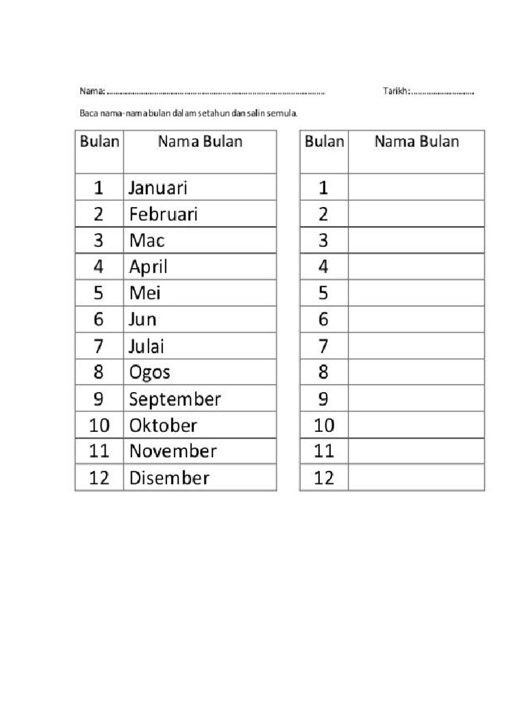 Download Nama Hari - 3 worksheet | Worksheets, Online activities, WorkbookMy BM 1640052643 Latihan Menulis Nama Nama Bulan Dalam Setahun Ver 1 | PDF